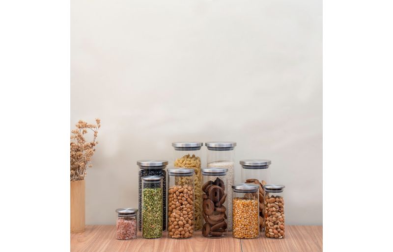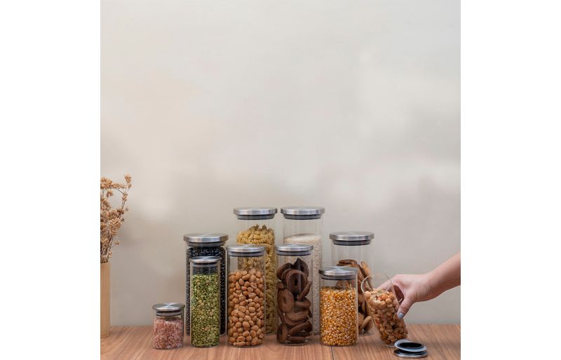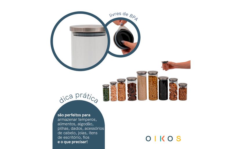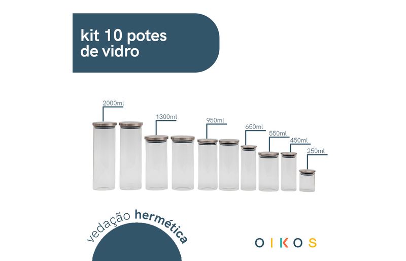 Kit 10 pote de vidro com tampa de inox redondo mantimento - oikos