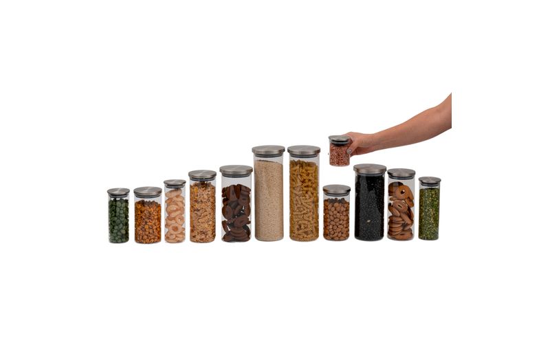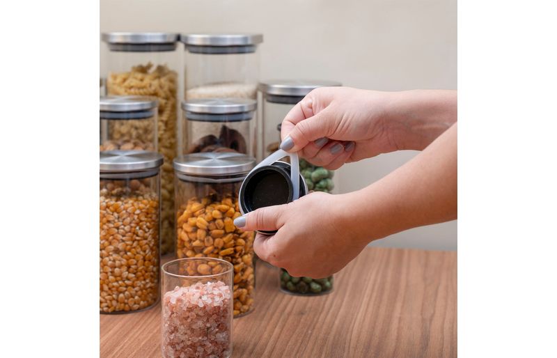 são duráveis, possuem design decorativo e o anel de silicone na tampa garante uma vedação total do pote! são versáteis: podem armazenar alimentos, temperos, algodão, acessórios de cabelo, joias, itens de escritório, fios e o que mais você quiser guardar. as tampas são em inox, suuuper fáceis de limpar, além de ficarem uma graça na cozinha!