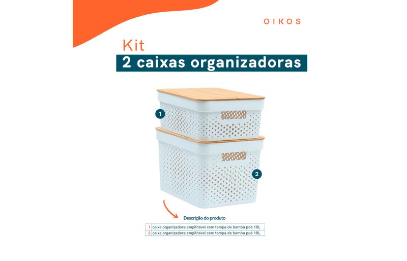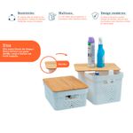 """conheça o kit com 2 caixas organizadoras com tampa de bambu poá 10l e 18l branco da oikos.