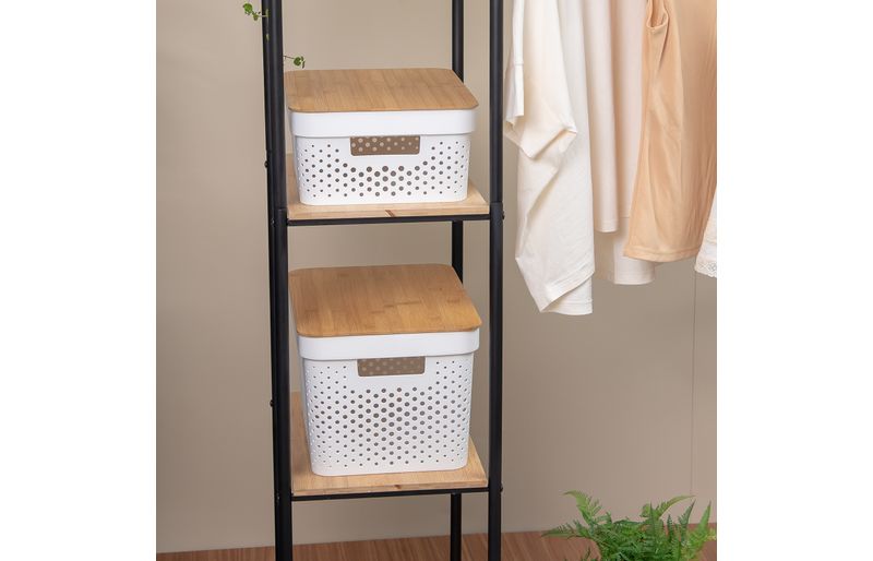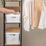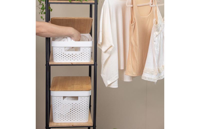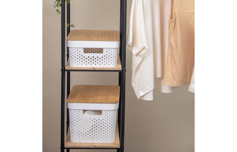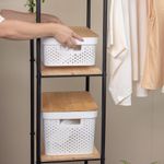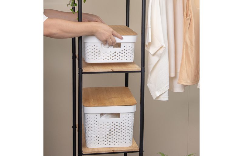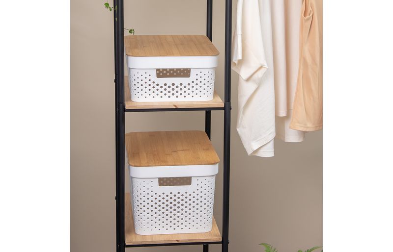 1 caixa organizadora com tampa de bambu poá branca 10l