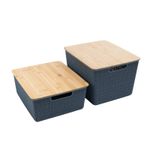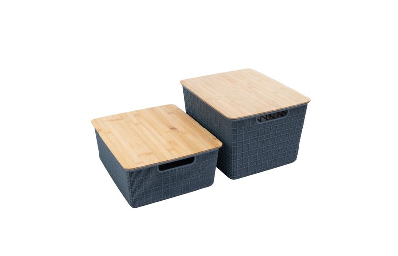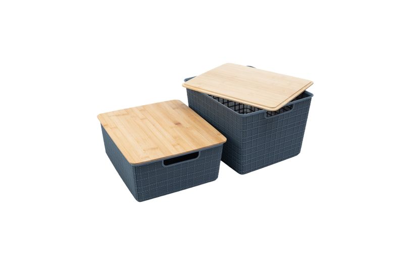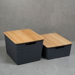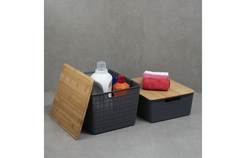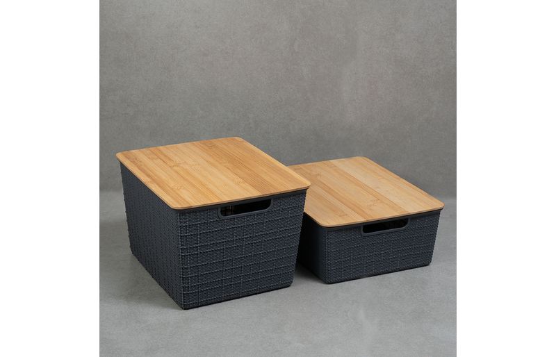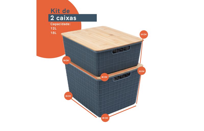 "esse é o kit 2 caixas organizadoras tampa bambu 12l/18l cinza – oikos