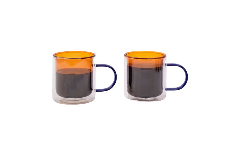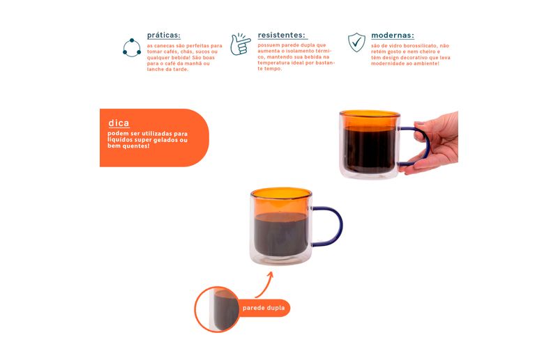 "conheça o kit com 2 canecas de vidro dueto com parede dupla 350ml da oikos.