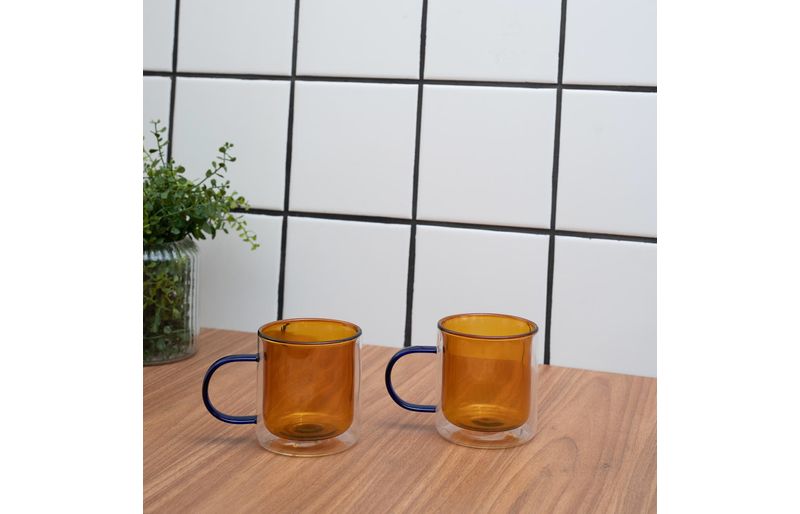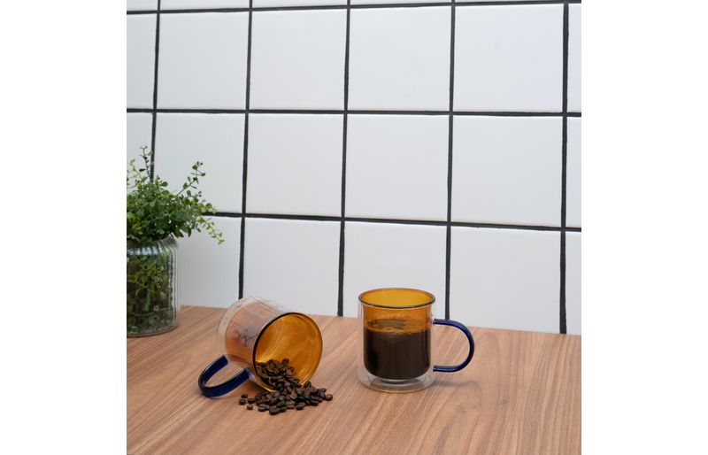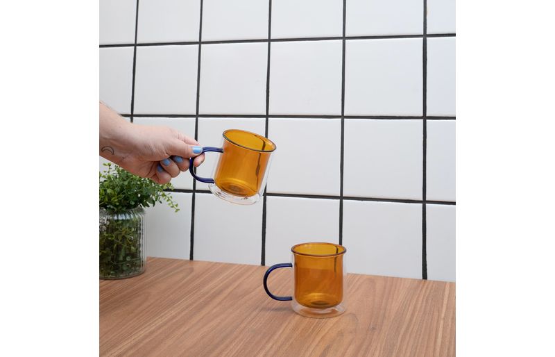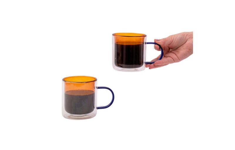 2 canecas de vidro dueto parede dupla 350ml"