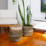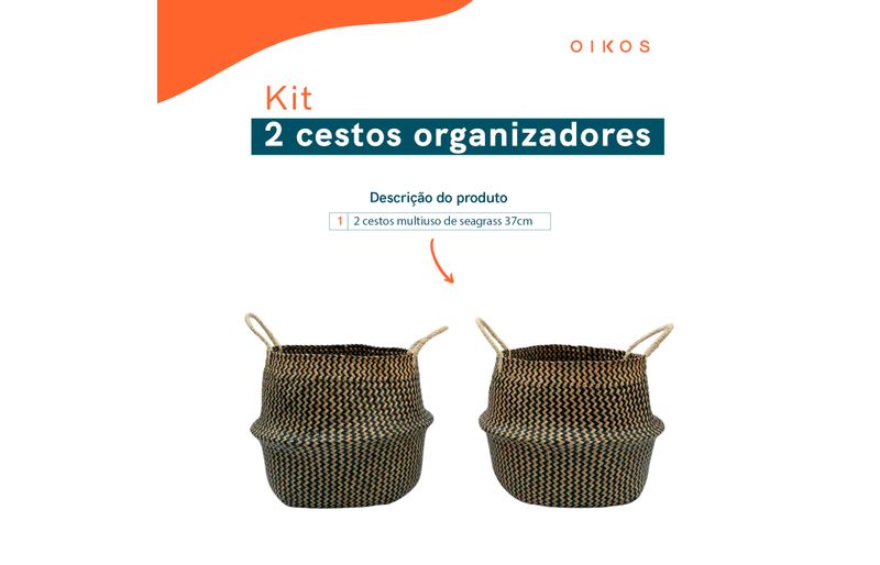 """conheça o kit de 2 cestos quadrados de seagrass 37cm da oikos.
