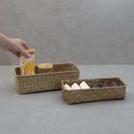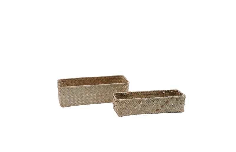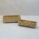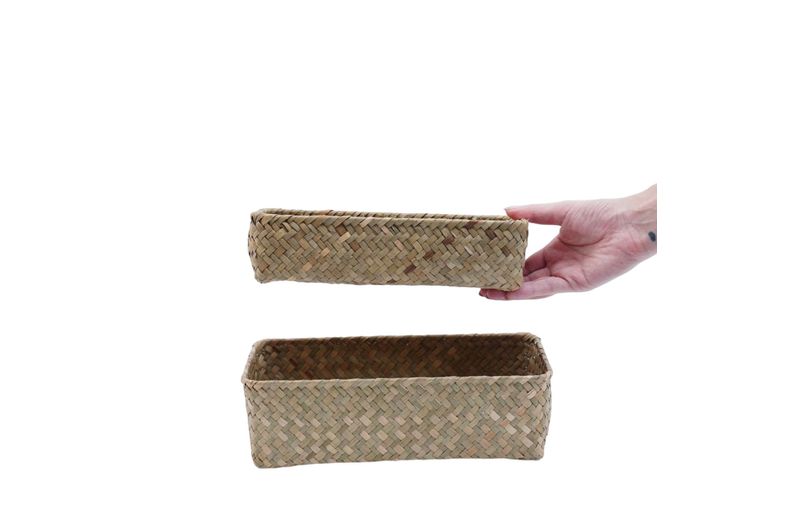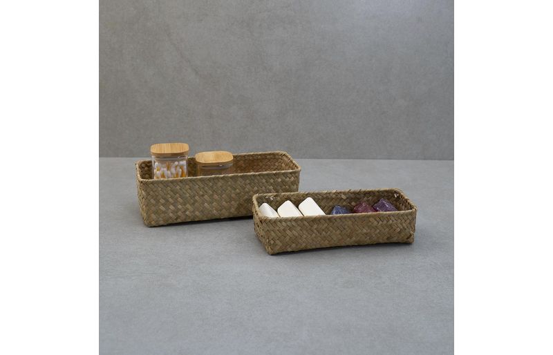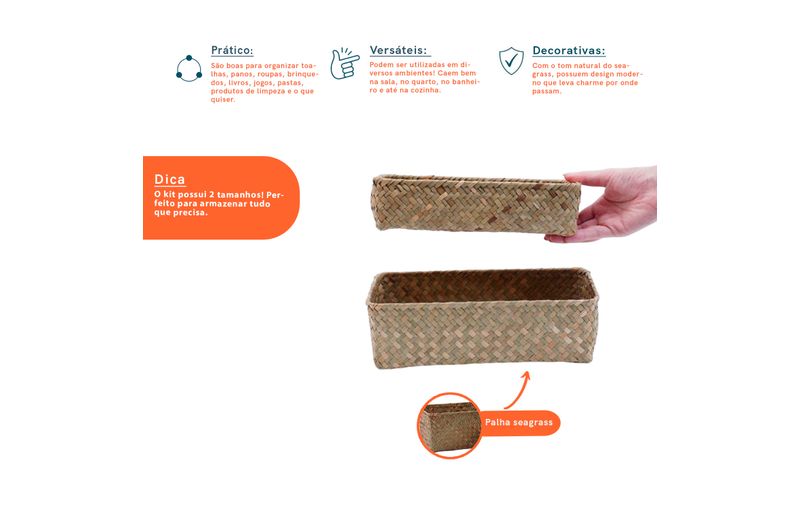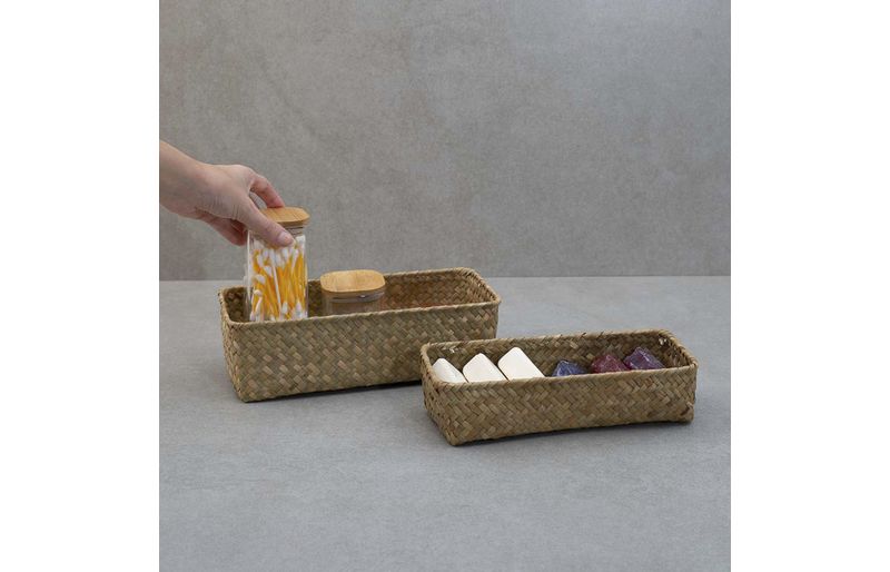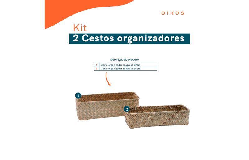 """conheça o kit de 2 cestos quadrados de seagrass 24cm e 27cm da oikos.
