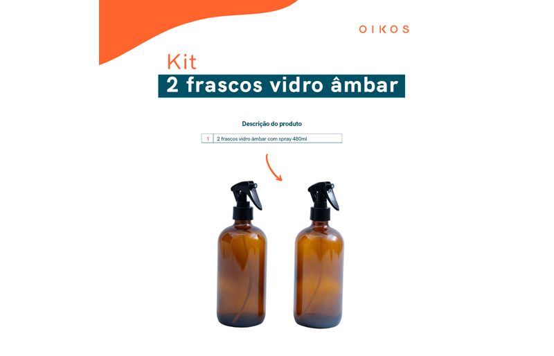 "conheça o kit de 2 frascos de vidro âmbar com spray 480ml da oikos.