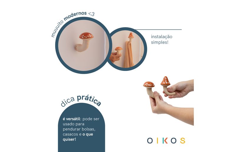 "conheça o kit 2 ganchos de cogumelo da oikos!