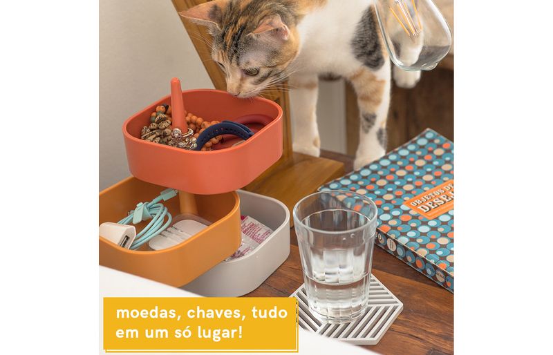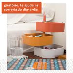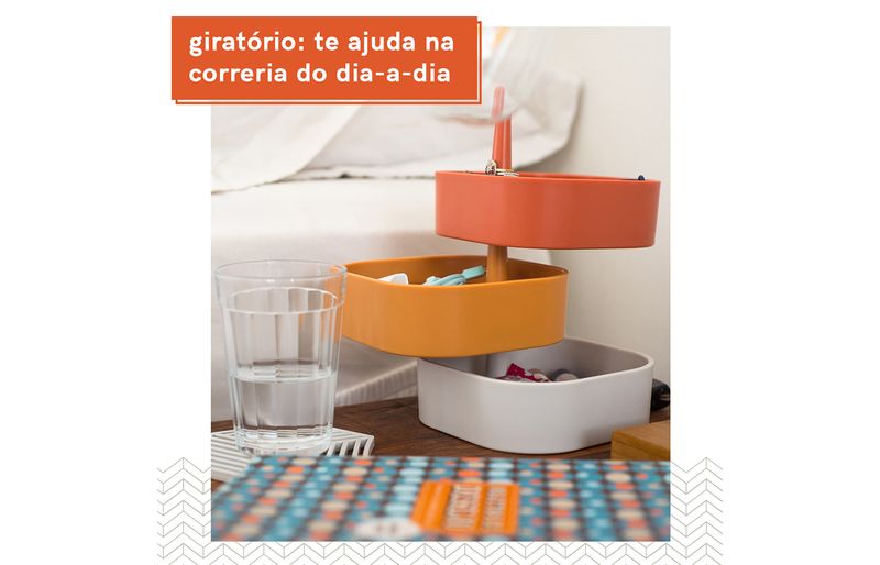 :: giratório: ao empilhar através do suporte, ele consegue girar para ser mais fácil a enxergar o que tem ali dentro.