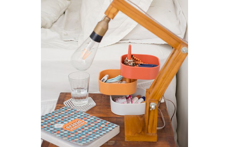 :: contém: 2 organizadores empilháveis de plástico.