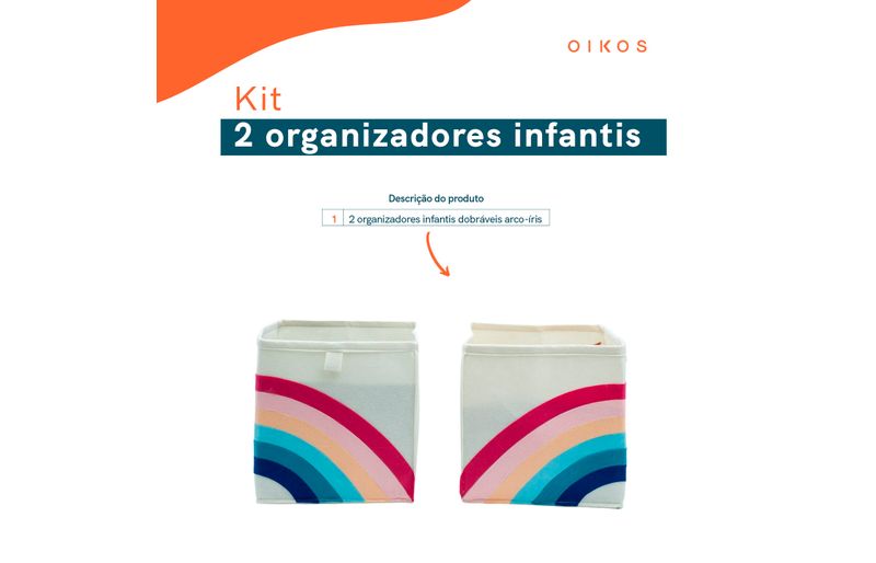 Kit 2 organizadores infantis dobráveis para roupas e brinquedos cores - oikos