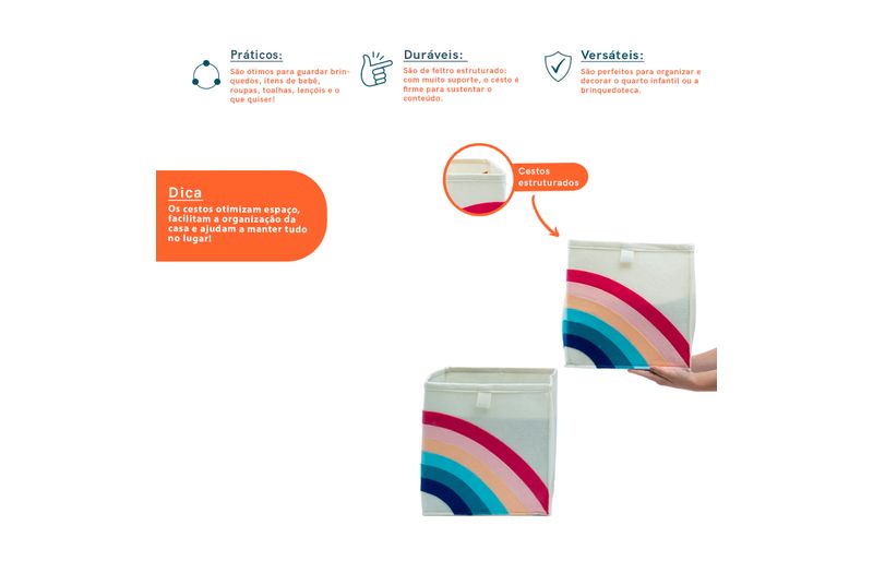 casa organizadacestosKit 2 organizadores infantis dobráveis para roupas e brinquedos cores - oikos