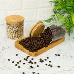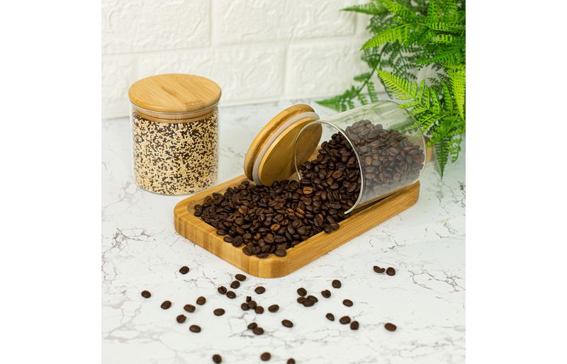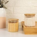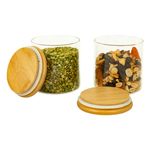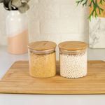 "este é o kit com 2 potes de vidro para mantimentos com tampa de bambu 500ml - oikos