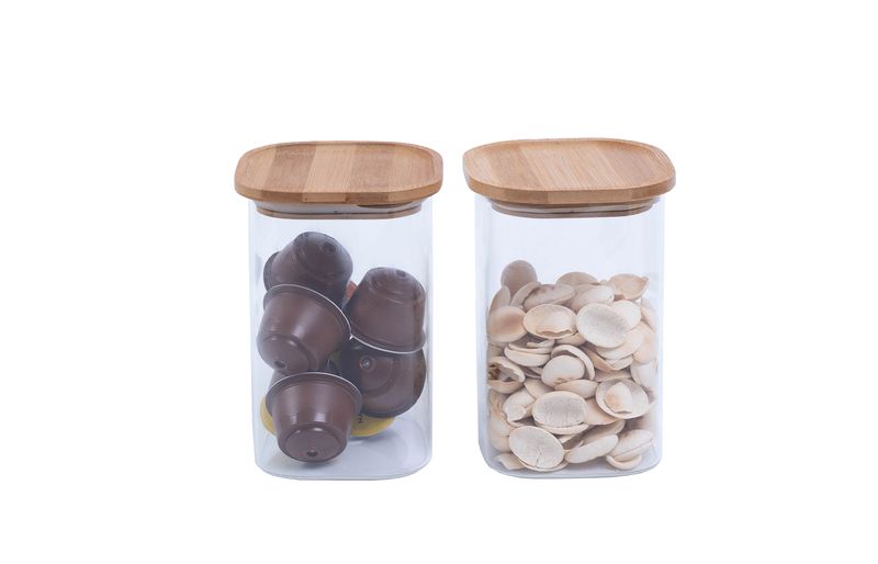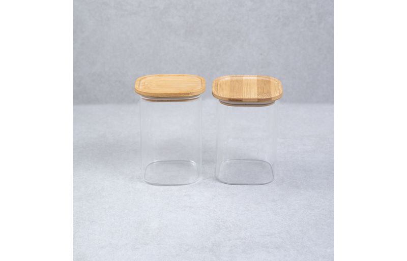 2 potes herméticos de vidro com tampa de bambu empilháveis quadrados 1,1l""