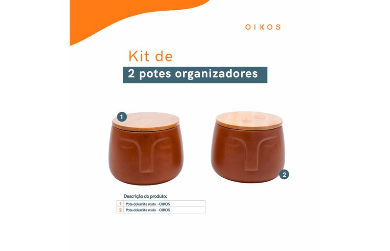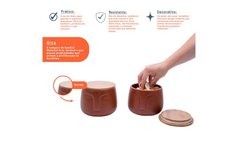 "conheça o kit de 2 potes dolomita com tampa de bambu rosto da oikos.