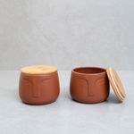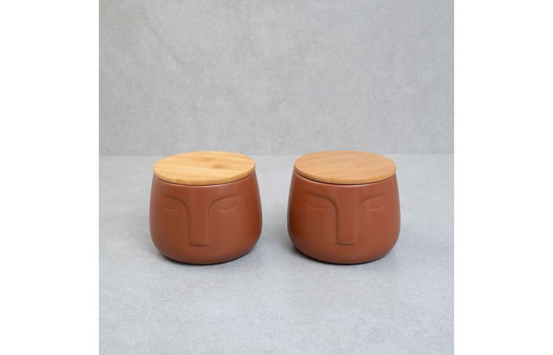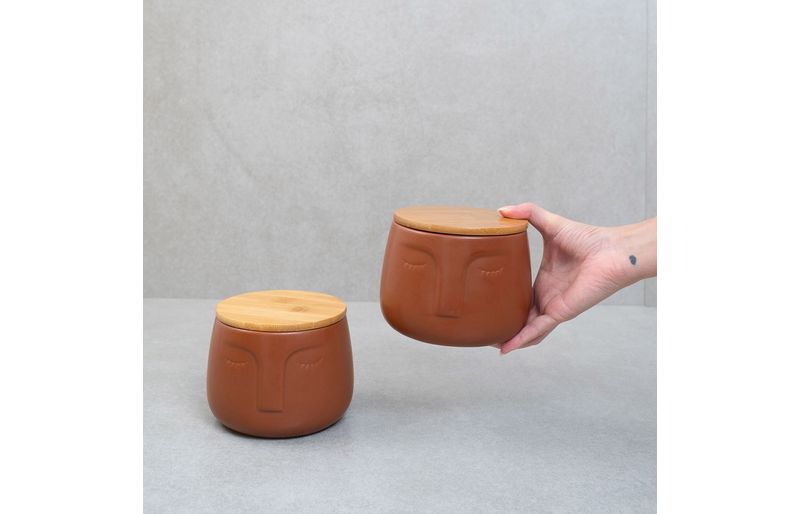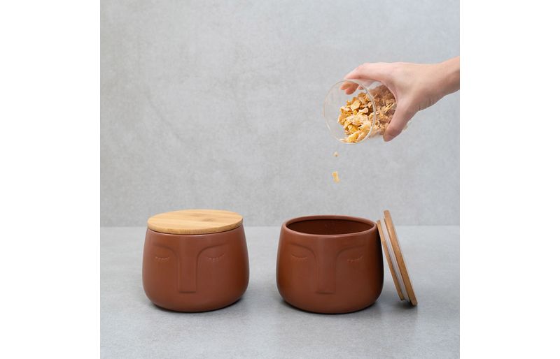 2 potes dolomita com tampa de bambu rosto"