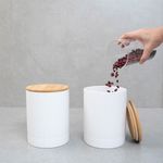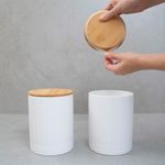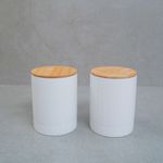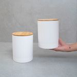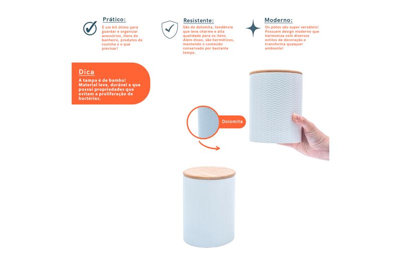 "conheça o kit de 2 potes dolomita com tampa de bambu zig zag 1,2l da oikos.
