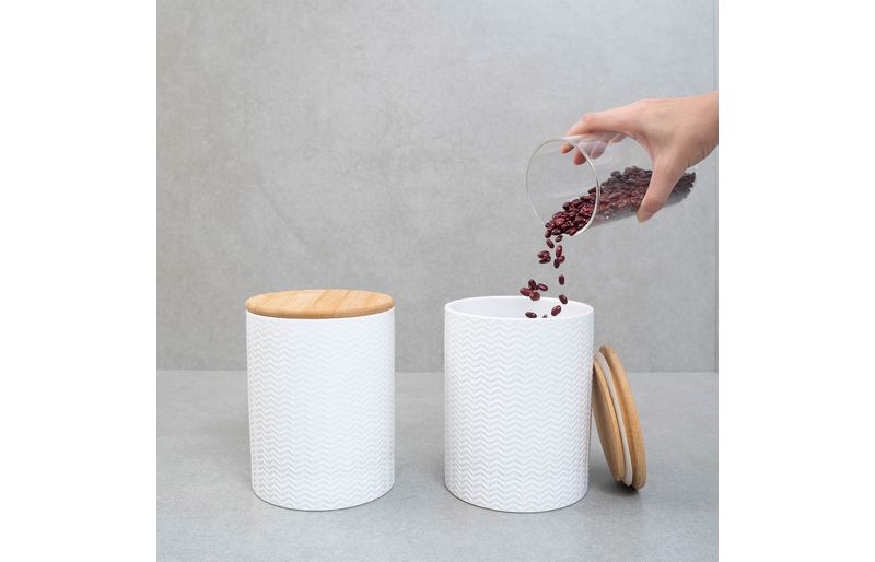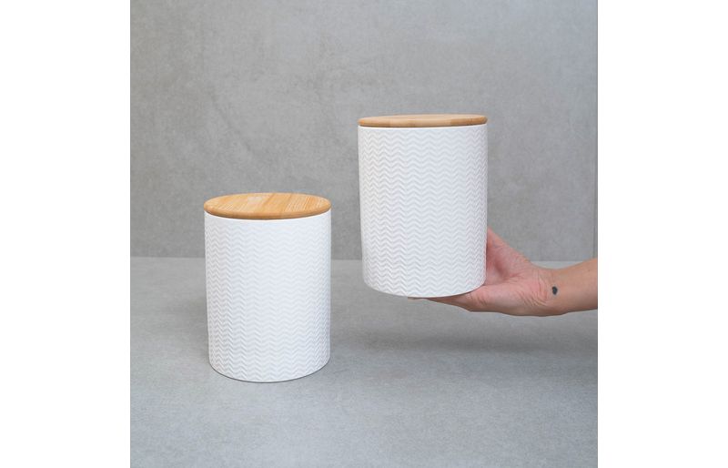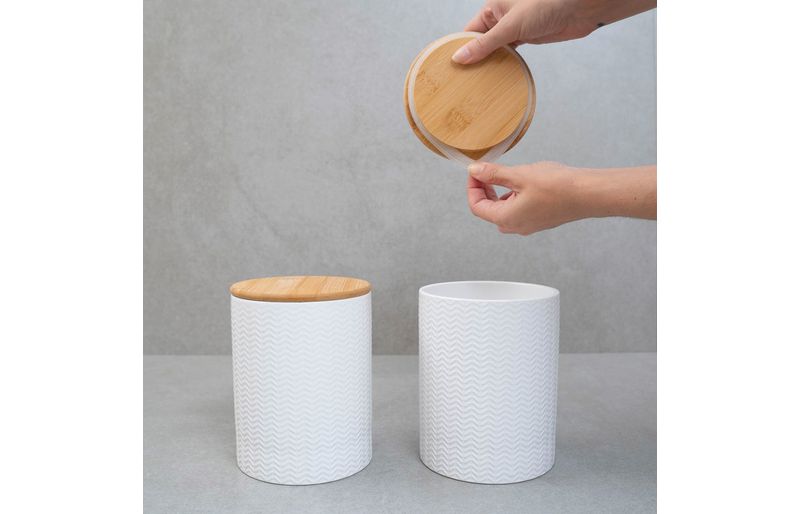 2 potes dolomita com tampa de bambu zig zag 1,2l"