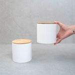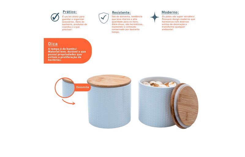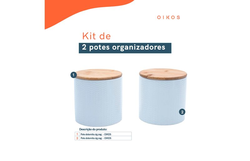 "conheça o kit de 2 potes dolomita com tampa de bambu zig zag 900ml da oikos.