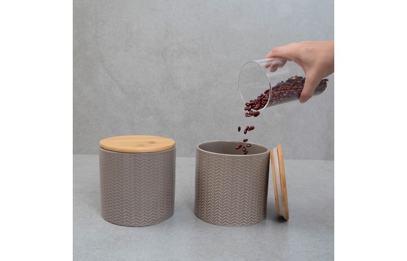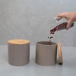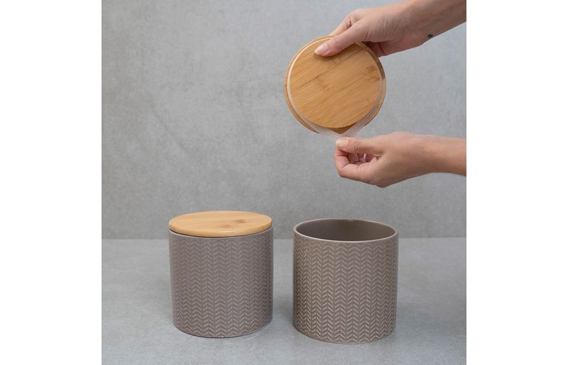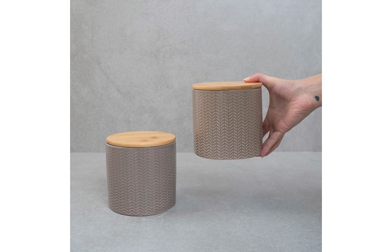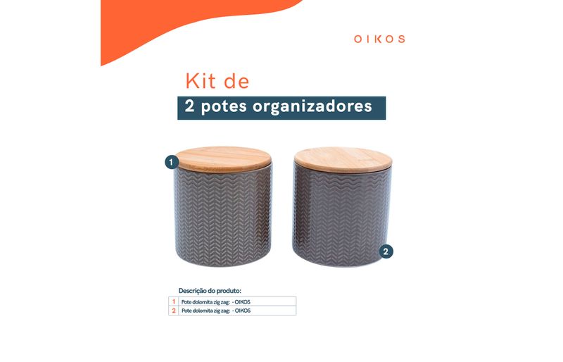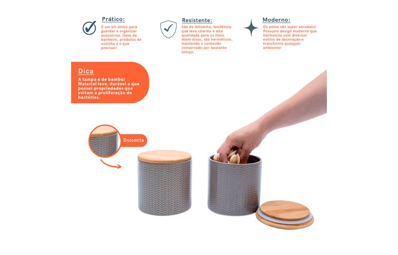 """conheça o kit de 2 potes dolomita com tampa de bambu zig zag 900ml da oikos.
