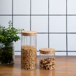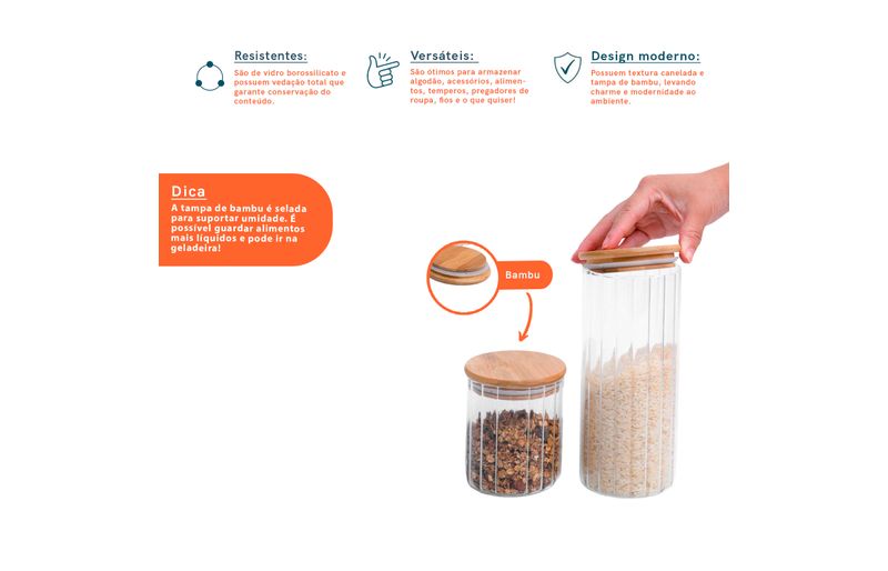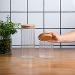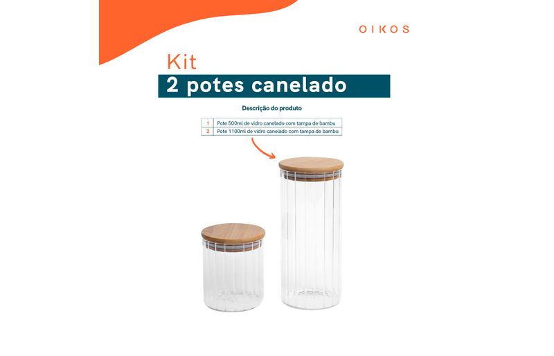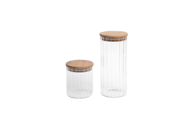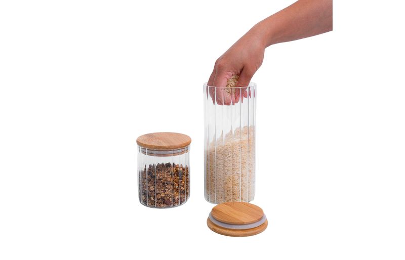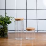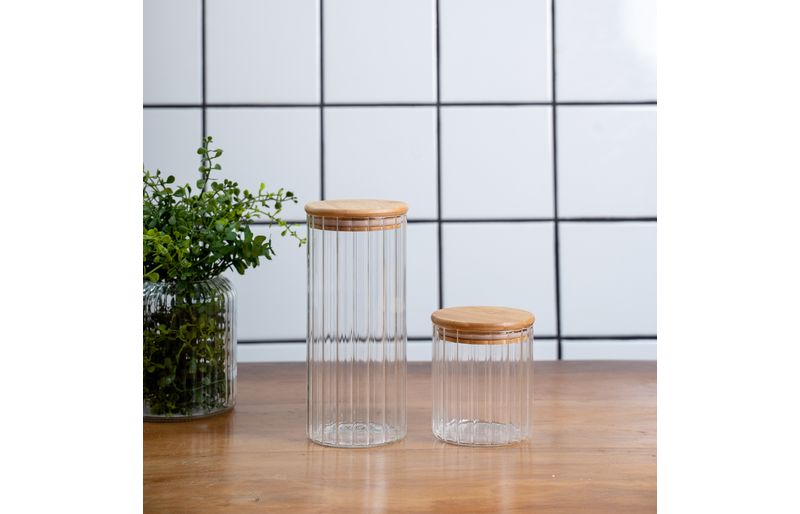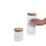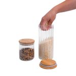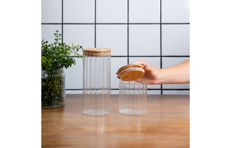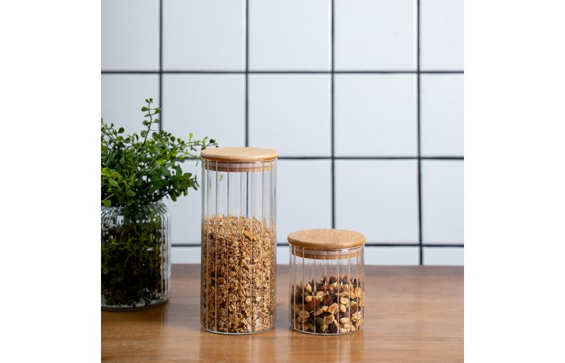 potes e mais potespotes com tampa de bambuKit 2 potes vidro herméticos para mantimentos canelado com tampa de bambu - oikos