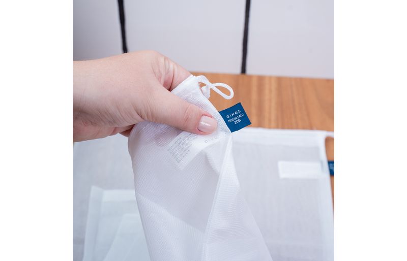 "conheça o kit de 2 sacos de tecido para alimentos da oikos!