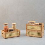 "conheça o kit de 3 caixas organizadoras empilháveis de bambu e palhinha 24cm da oikos.