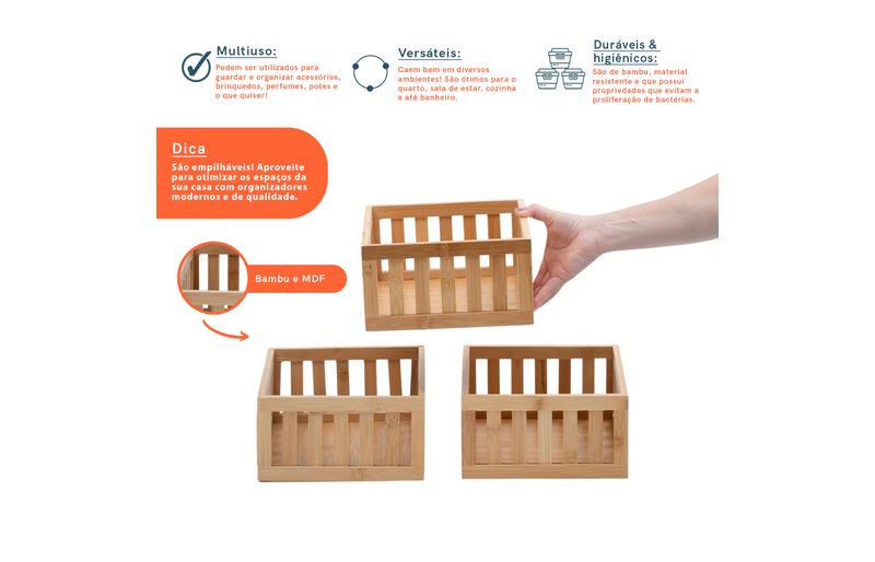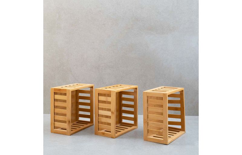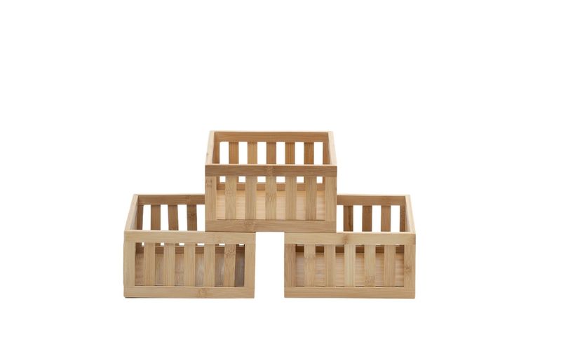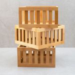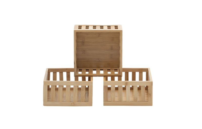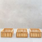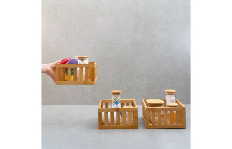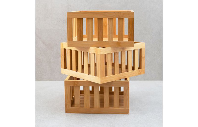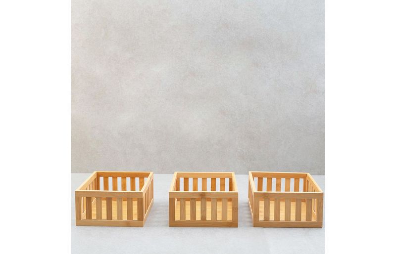 3 cestos organizadores ripados de bambu 22cm""