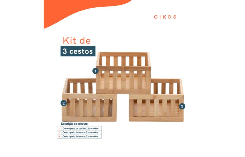 Kit 3 cestos organizadores ripados de bambu 22cm - oikos"""conheça o kit de 3 cestos ripados de bambu 22cm da oikos.
