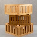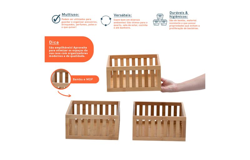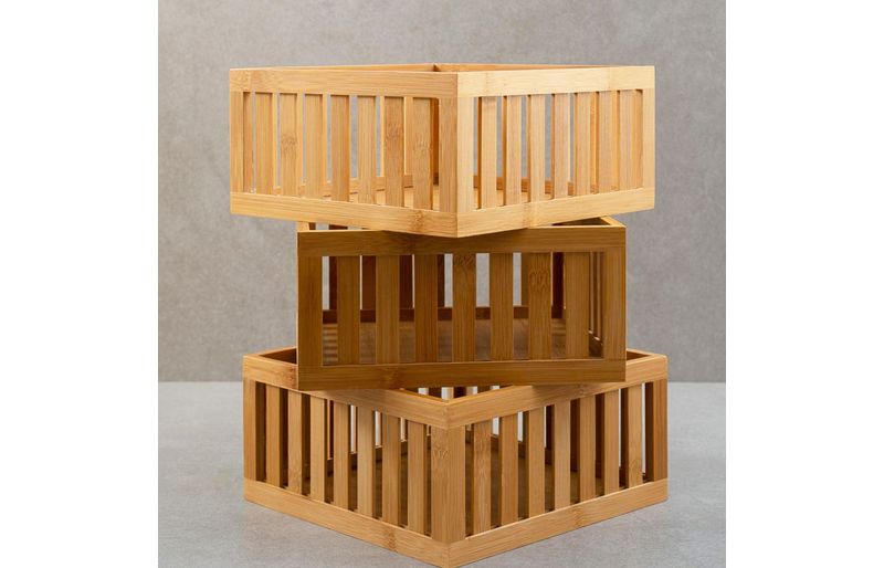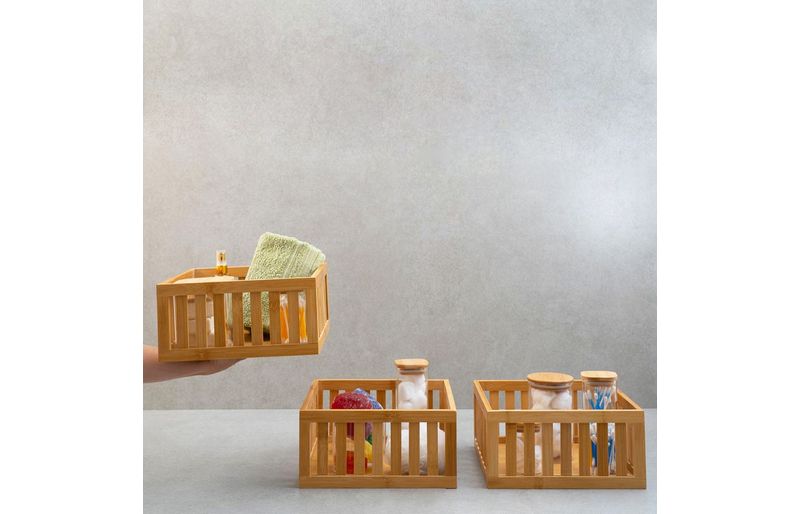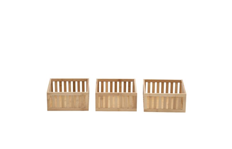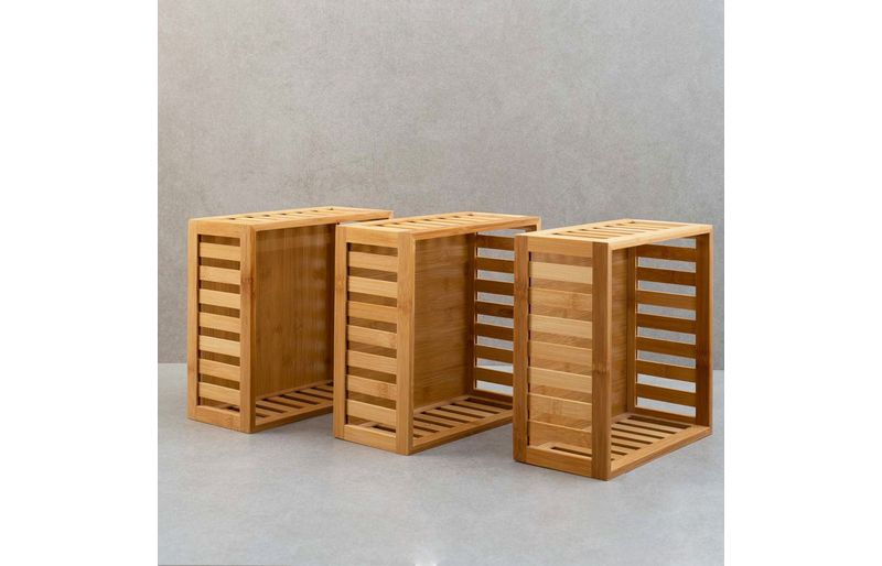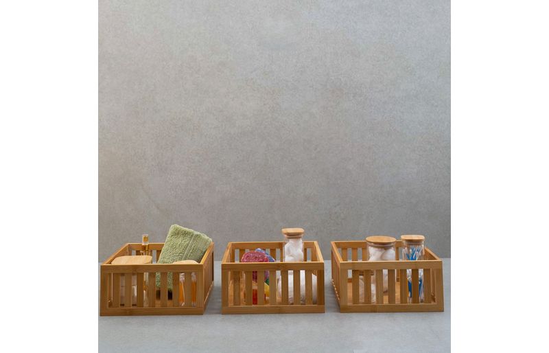 3 cestos organizadores ripados de bambu 27cm""