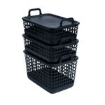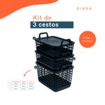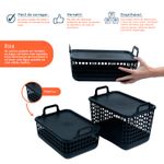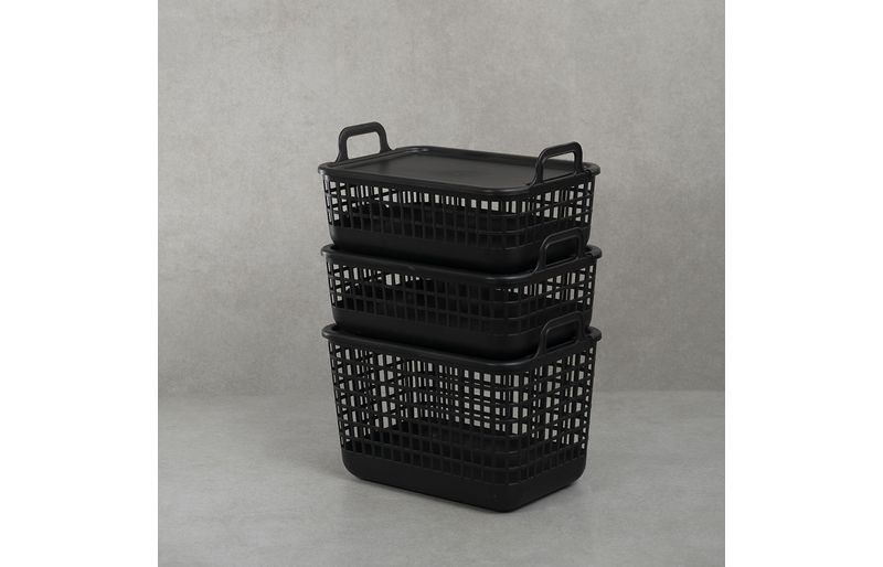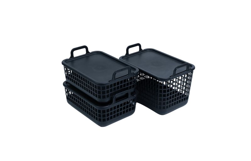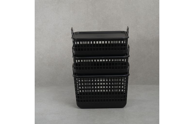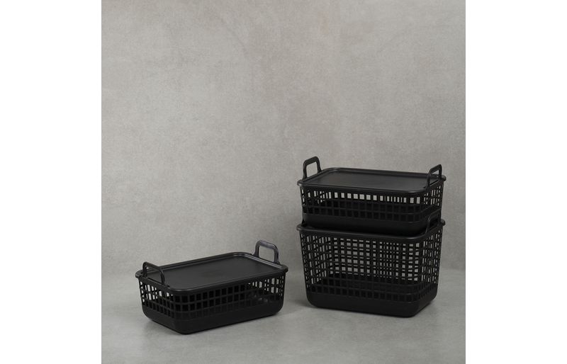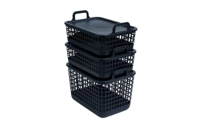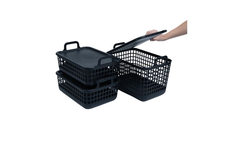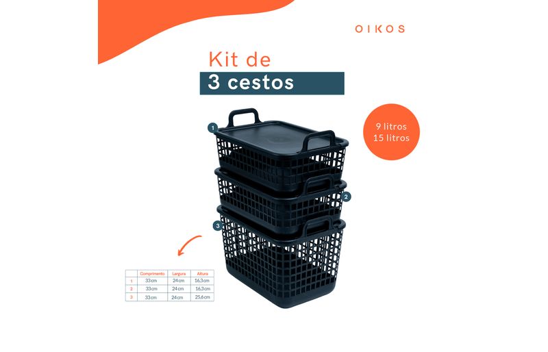 "esse é o kit 3 cestos telados c/ tampa de plástico 2p/1m preto– oikos