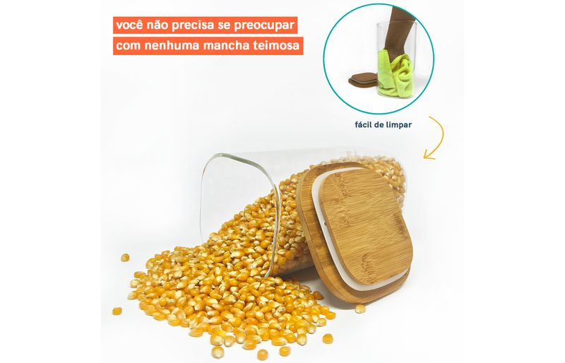 seu formato quadrado ajuda a aproveitar melhor o espaço - ele encaixa direitinho no canto do armário. e não para por aí: sua tampa de bambu é empilhável, o que ajuda mais um pouquinho a aproveitar o espaço disponível em casa. e não julgue pelas aparências, ele não é só um potinho bonito: com a combinação da vedação de silicone e o bambu antibactericida, esse pote se torna um verdadeiro mestre na conservação de alimentos!
