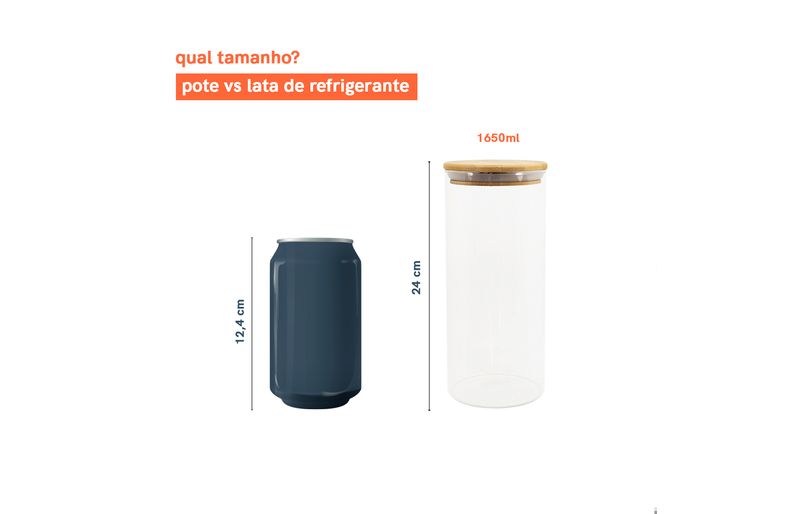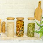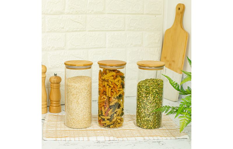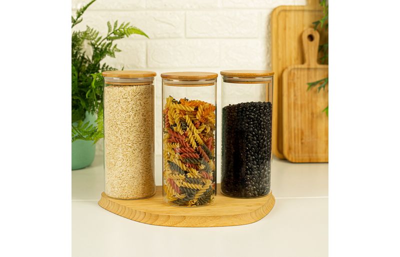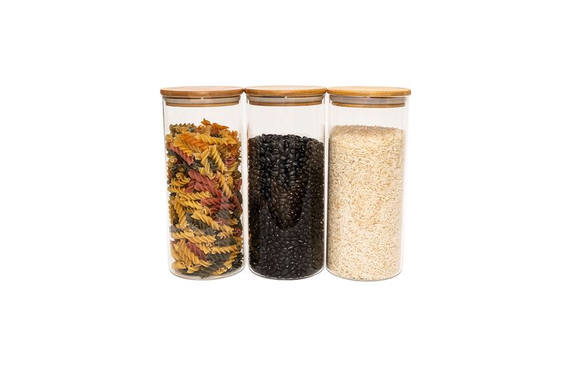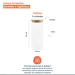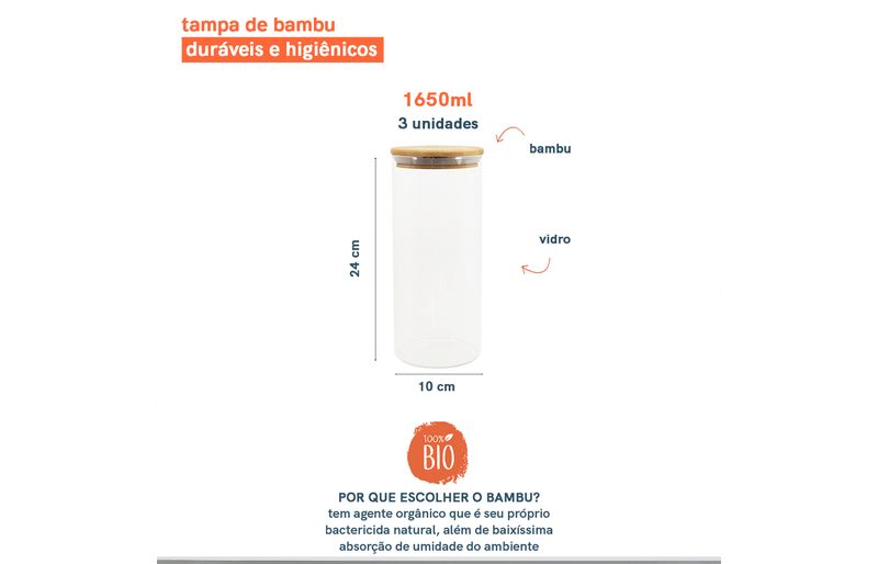 03 potes de vidro hermético para mantimentos de 1650ml com tampa de bambu - oikos