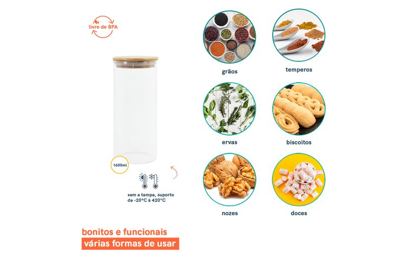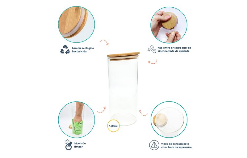 não julgue pelas aparências, ele não é só um potinho bonito: com a combinação da vedação de silicone e o bambu antibactericida, esse pote se torna um verdadeiro mestre na conservação de alimentos!