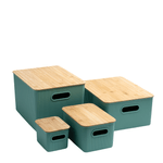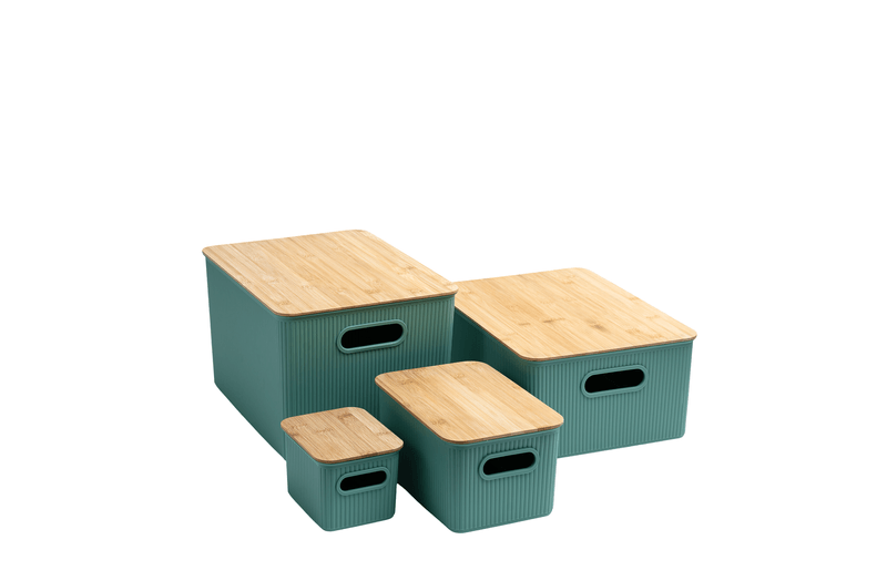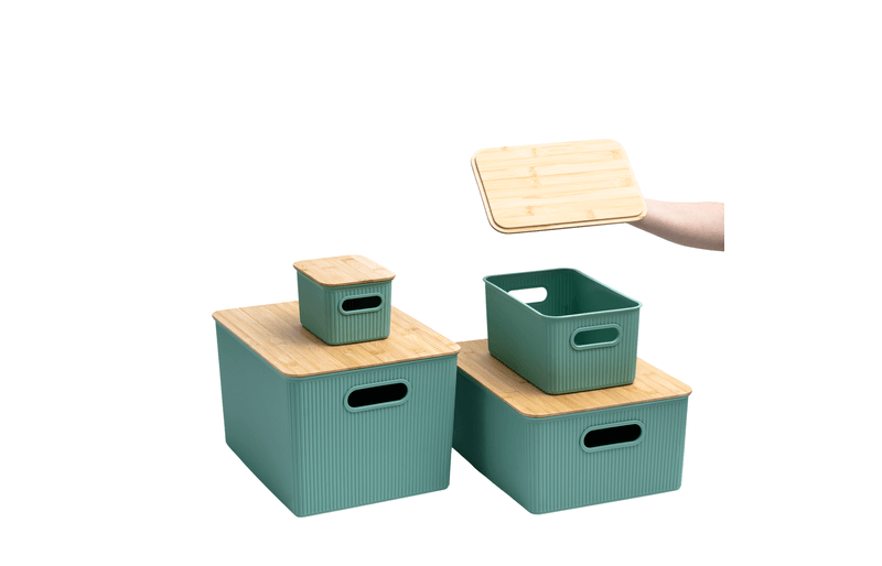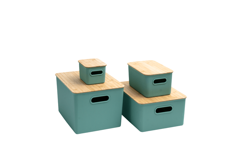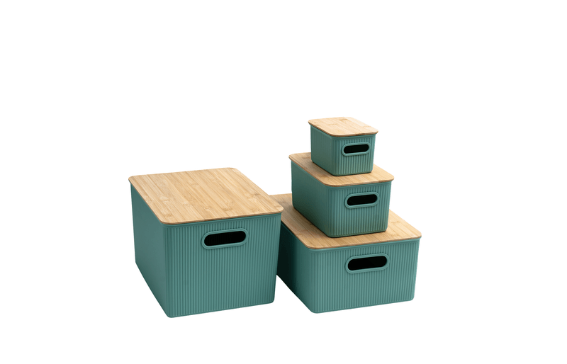 1 caixa organizadora canelada com tampa de bambu 23l – oikos