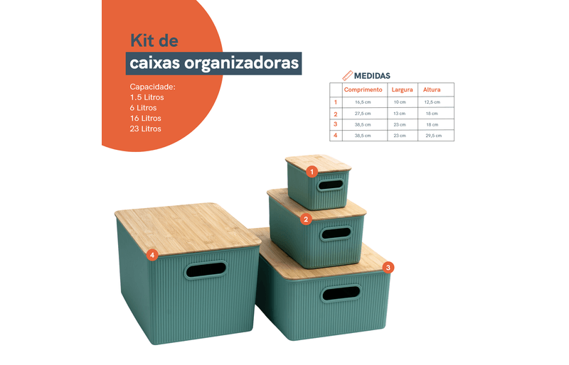 esse é o kit 4 caixas canelada tampa bambu 1,5l,6l,16l,23l vsl oikos