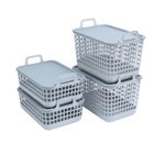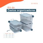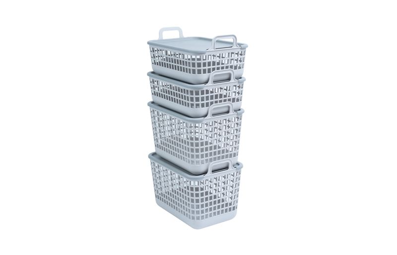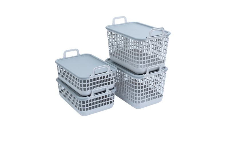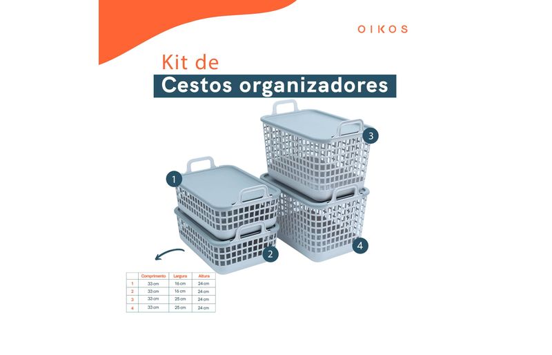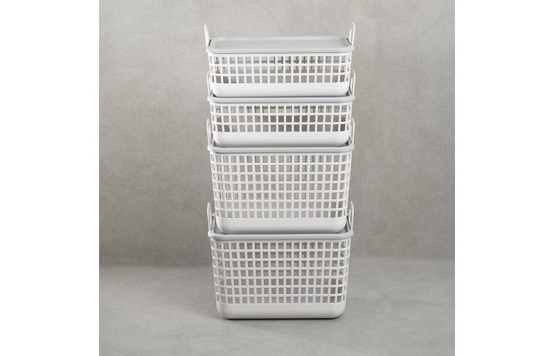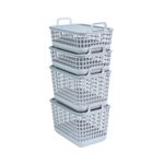 "esse é o kit 4 cestos telados de plástico c/ tampa 2p/2m cinza – oikos