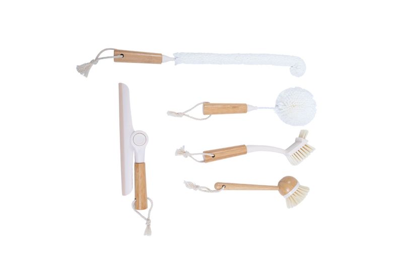 Kit 4 escova de limpeza e rodo de pia off-white - oikos