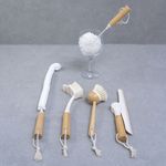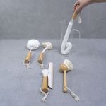 lavanderia com simplopanos, esponjas e escovasKit 4 escova de limpeza e rodo de pia off-white - oikos