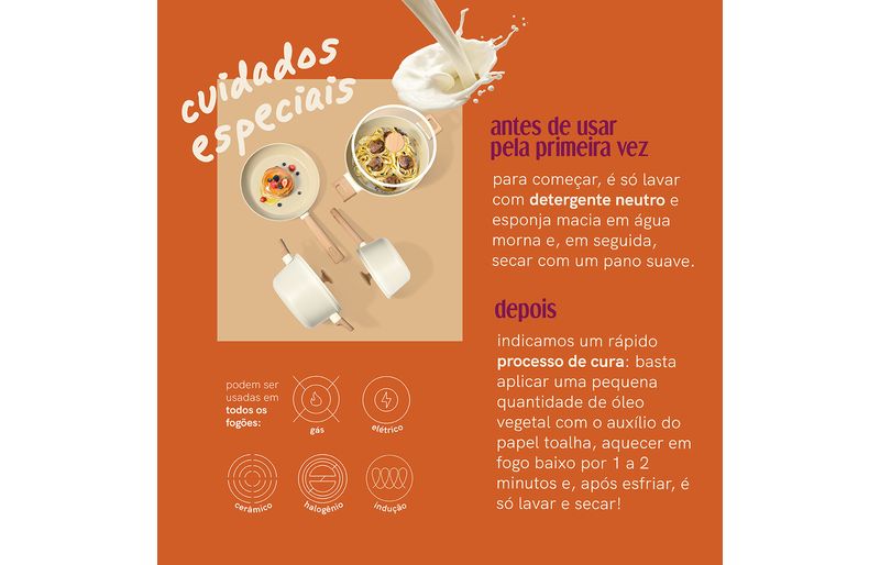 podem ser usadas em todos os tipos de fogão: indução, gás, elétrico e vitrocerâmico. não podem ir ao forno ou em microondas!