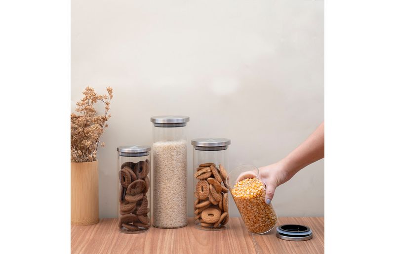 são duráveis, possuem design decorativo e o anel de silicone na tampa garante uma vedação total do pote! são versáteis: podem armazenar alimentos, temperos, algodão, acessórios de cabelo, joias, itens de escritório, fios e o que mais você quiser guardar. as tampas são em inox, suuuper fáceis de limpar, além de ficarem uma graça na cozinha!