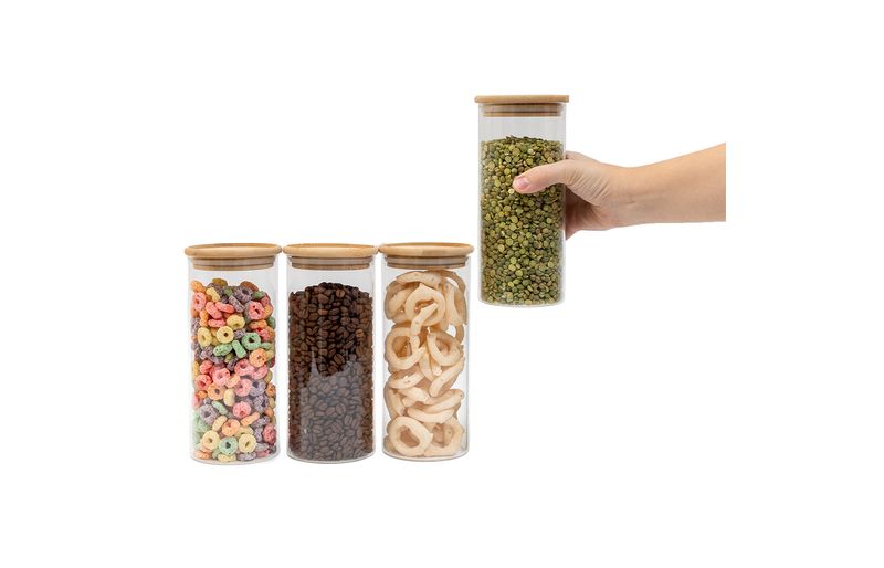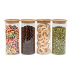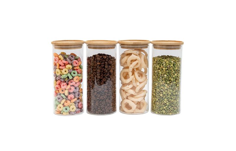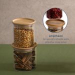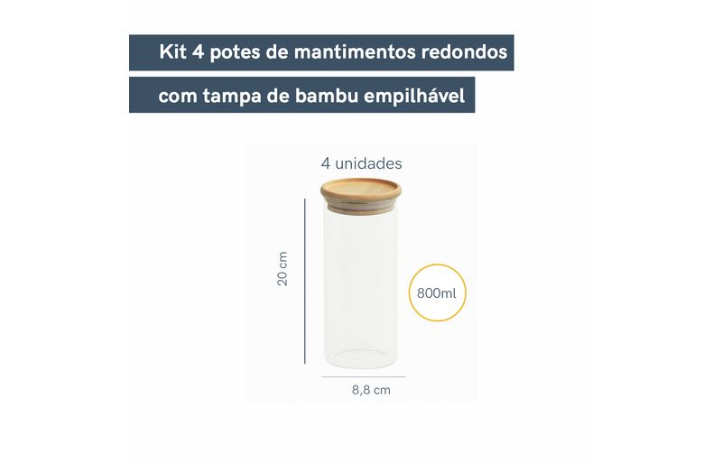 4 unidades - pote 800ml de vidro empilhável com tampa de bambu circular mantimento - oikos