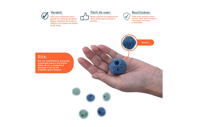 fácil de usar: insira na máquina de lavar junto com as peças. depois é só remover os pelos que grudaram. pode usar quantas vezes quiser!