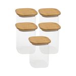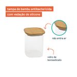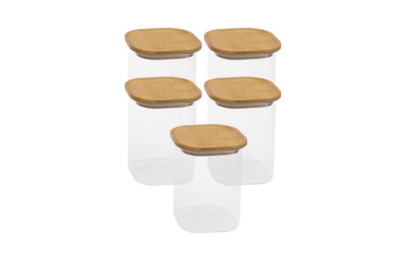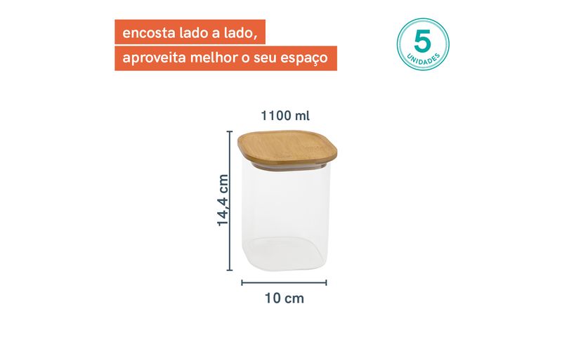 05 potes de vidro hermético para mantimentos quadrado de 1100ml com tampa de bambu – oikos