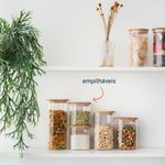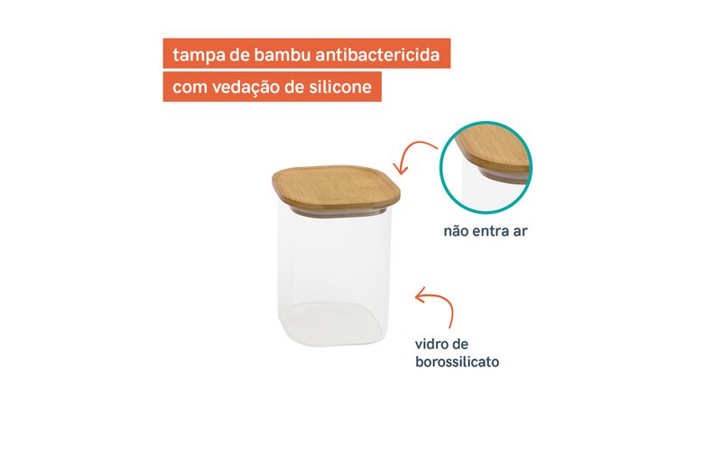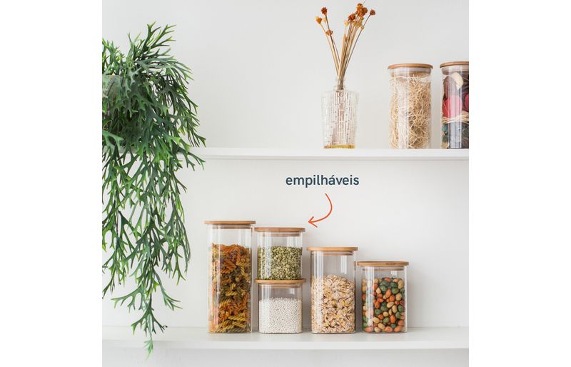 seu formato quadrado ajuda a aproveitar melhor o espaço - ele encaixa direitinho no canto do armário. e não para por aí: sua tampa de bambu é empilhável, o que ajuda mais um pouquinho a aproveitar o espaço disponível em casa. e não julgue pelas aparências, ele não é só um potinho bonito: com a combinação da vedação de silicone e o bambu antibactericida, esse pote se torna um verdadeiro mestre na conservação de alimentos!