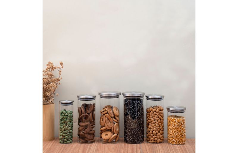 são duráveis, possuem design decorativo e o anel de silicone na tampa garante uma vedação total do pote! são versáteis: podem armazenar alimentos, temperos, algodão, acessórios de cabelo, joias, itens de escritório, fios e o que mais você quiser guardar. as tampas são em inox, suuuper fáceis de limpar, além de ficarem uma graça na cozinha!