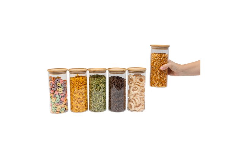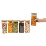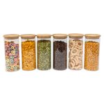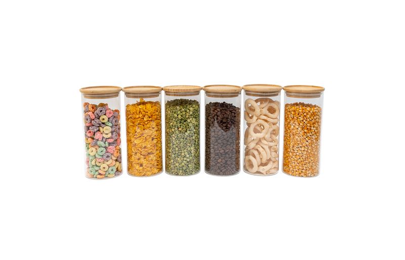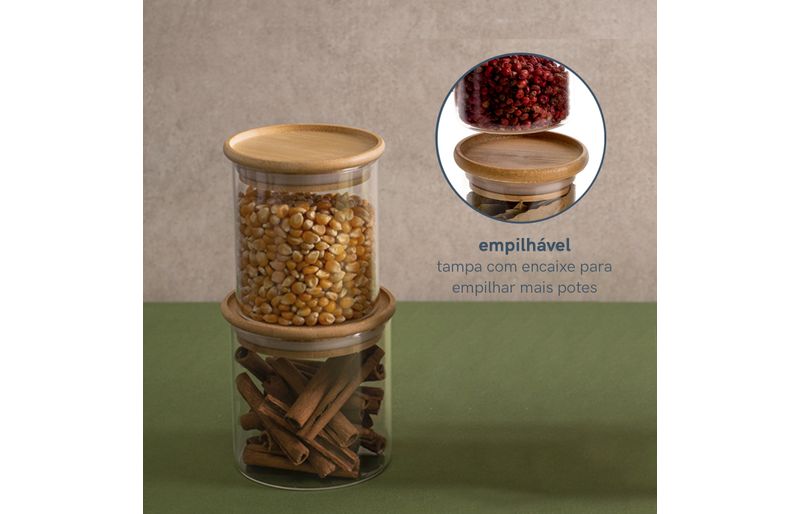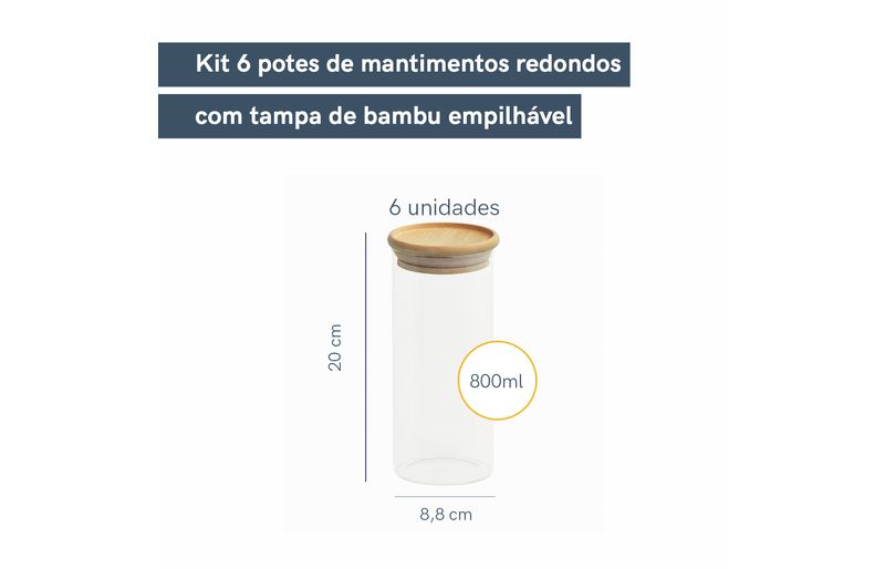 6 unidades - pote 800ml de vidro empilhável com tampa de bambu circular mantimento - oikos
