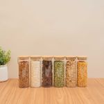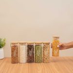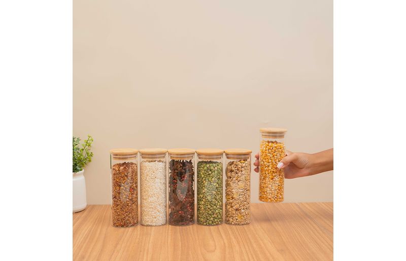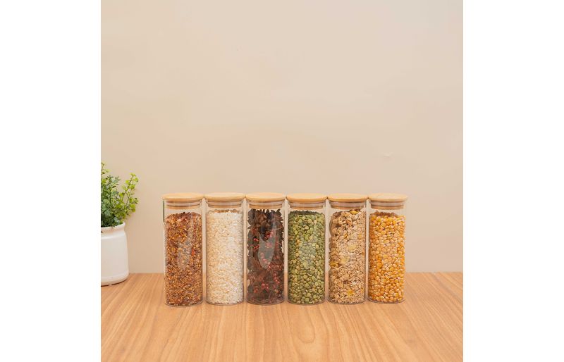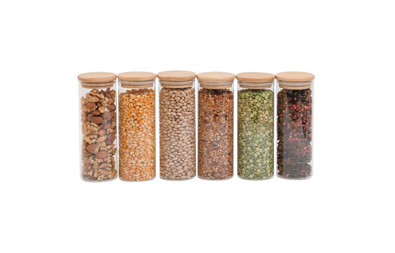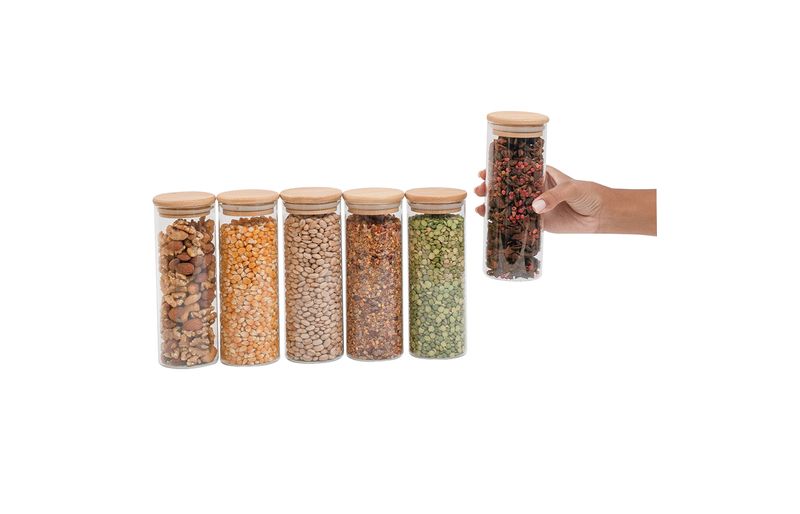 06 potes de vidro hermético para mantimentos de 450ml com tampa de bambu – oikos