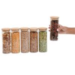 Esse é o kit de 6 potes de vidro hermético para mantimentos de 450ml com tampa de bambu da oikos.