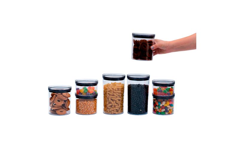 o anel de silicone na tampa garante uma vedação total do pote, são empilháveis, duráveis e possuem design decorativo e que harmoniza com a decoração.