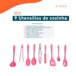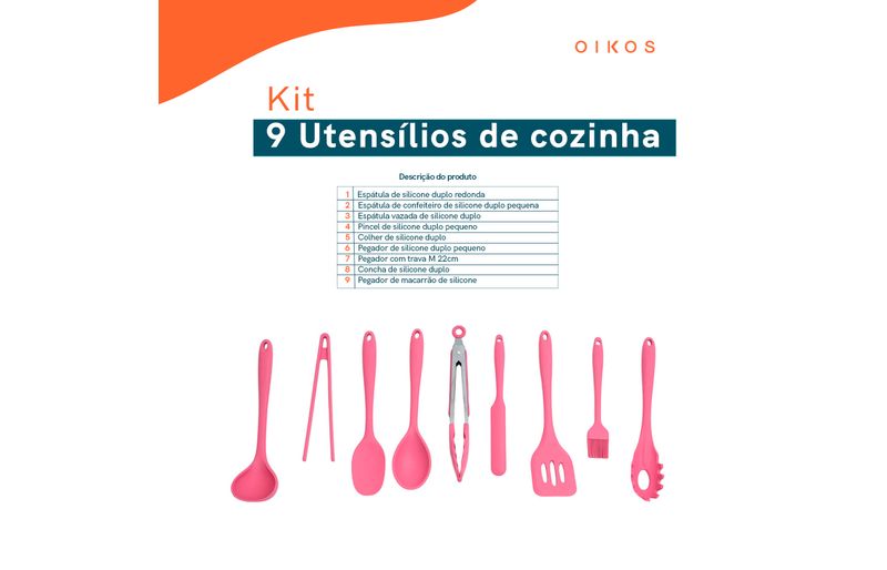 Kit 9 utensílios de cozinha de silicone completo multiuso - oikos
